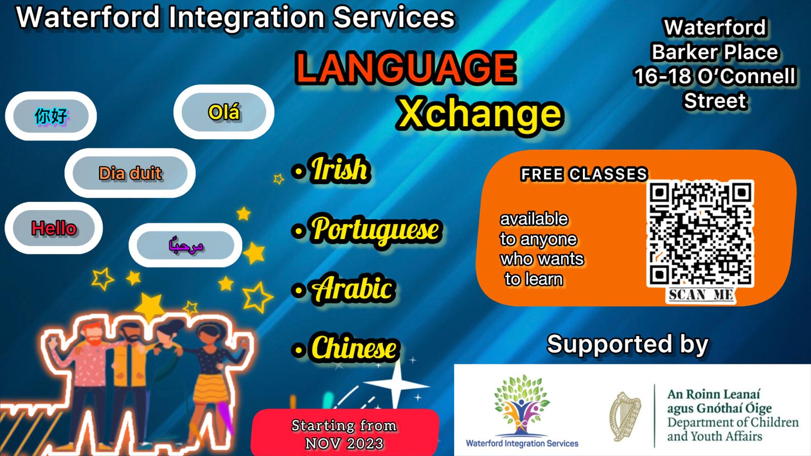 Waterford Integration Service provides an opportunity for anyone who wants to learn Arabic, Chinese, Irish or Portuguese.