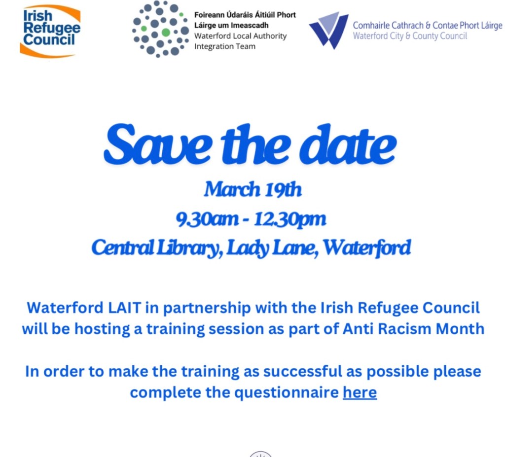 the Waterford LAIT in partnership with the Irish Refugee council will be hosting a training session on International Protection for our stakeholders.